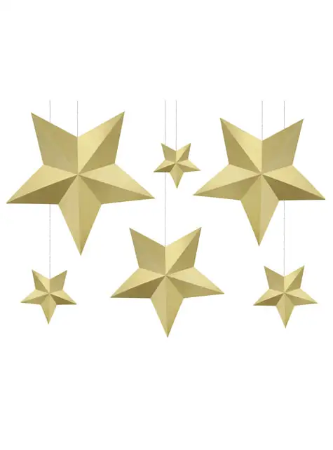 Lieferumfang: 6 Sterne mit den Maßen: 37 x 35 cm, 33 x 31 cm, 28,5 x 27,5 cm, 16 x 15 cm, 14 x 13,5 cm, 12 x 11,5 cm