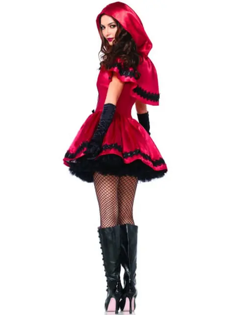 Beinhaltet Minikleid in Bäuerinstil aus Satin mit venezianischem Spitzenmuster und Umhang mit Kapuze.