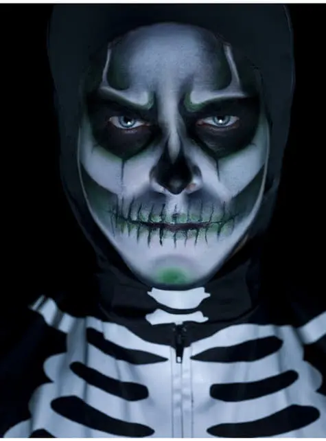 Leuchte auf schaurige Weise in der Dunkelheit mit diesem Schmink Set leuchtendes Skelett.