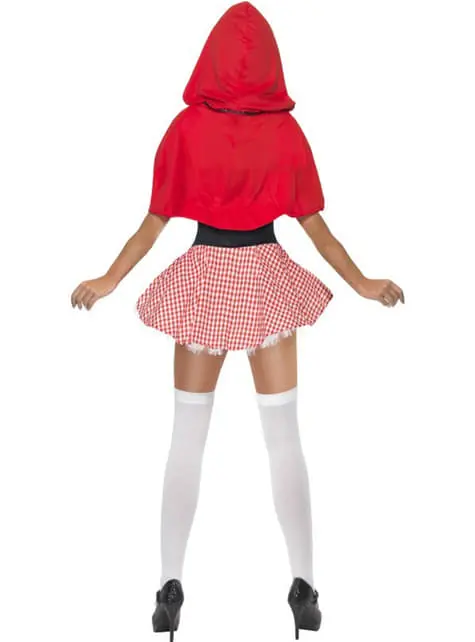 Beinhaltet ein Minikleid mit Korsetteffekt und einen roten Umhang mit Kaputze.