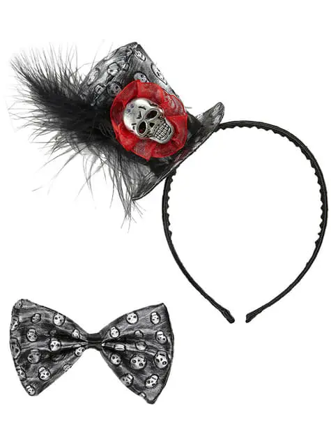 Lieferumfang: Diadem mit Mini Hut und Fliege
